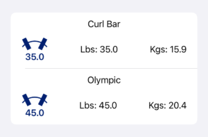 After you tap on the Add button, you will see your new barbell appear in the list on the page.